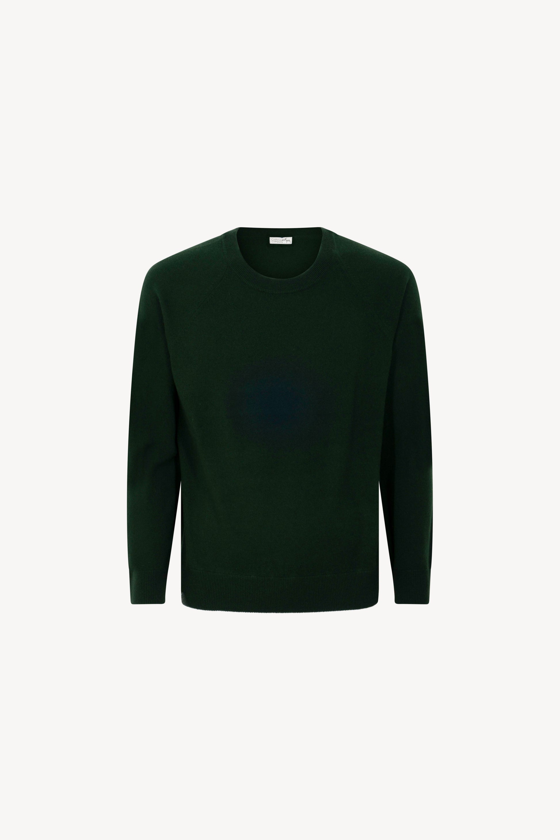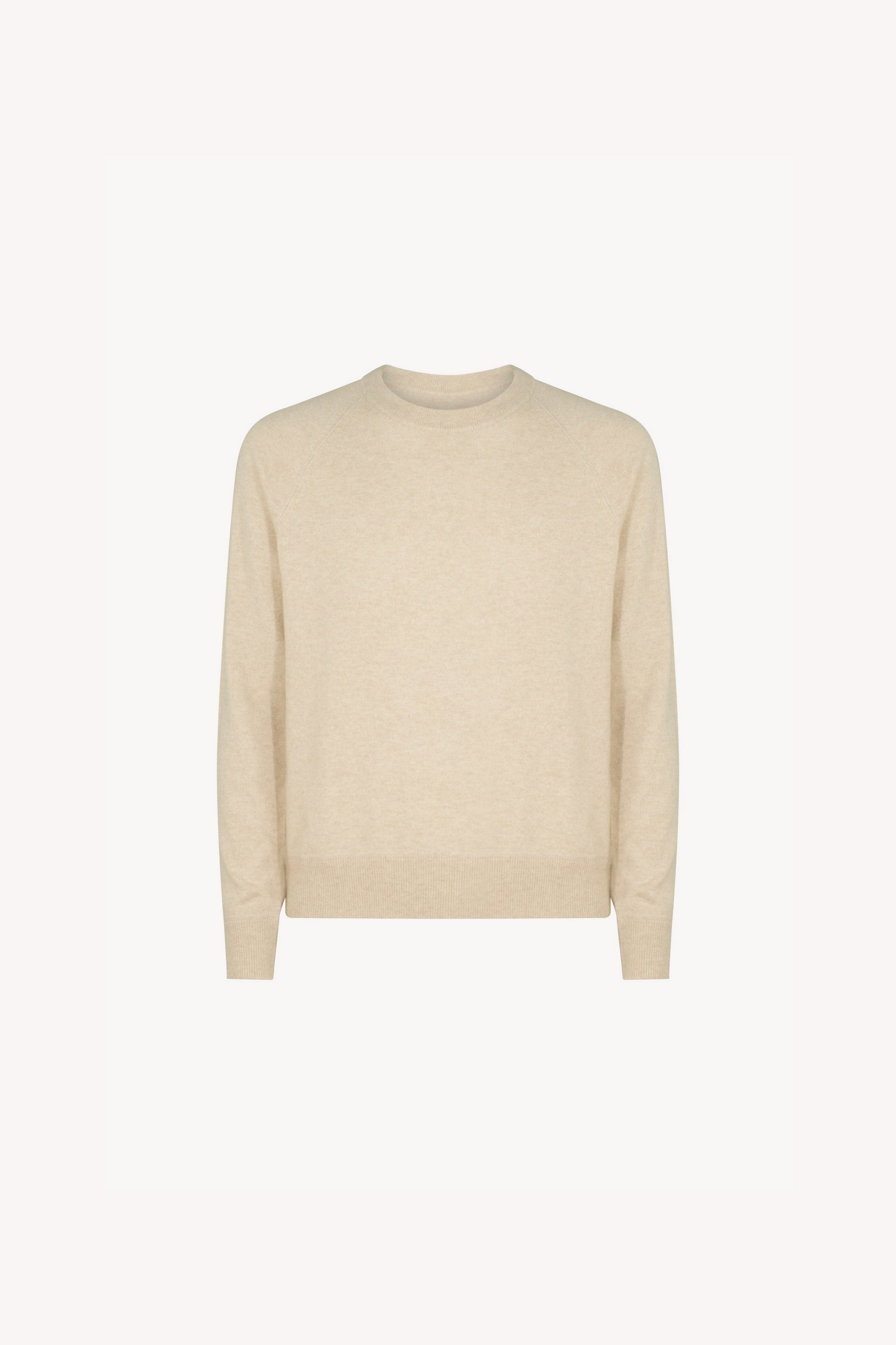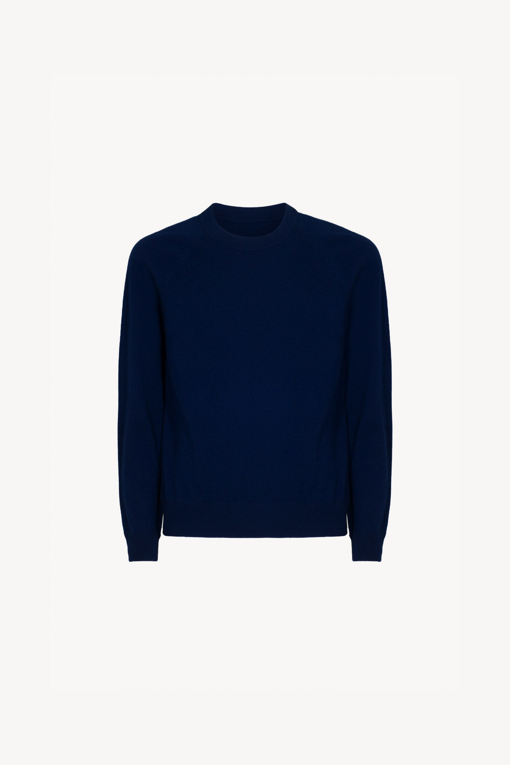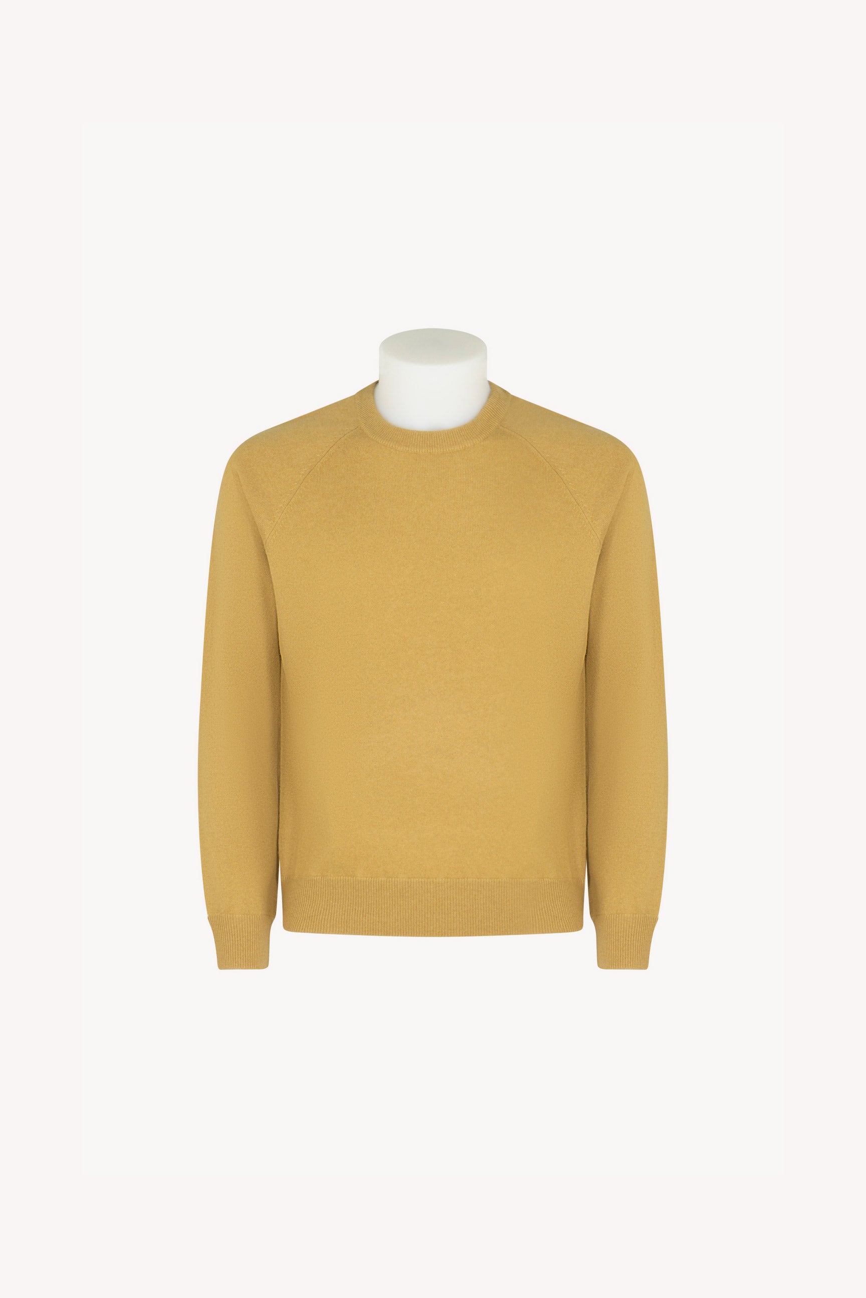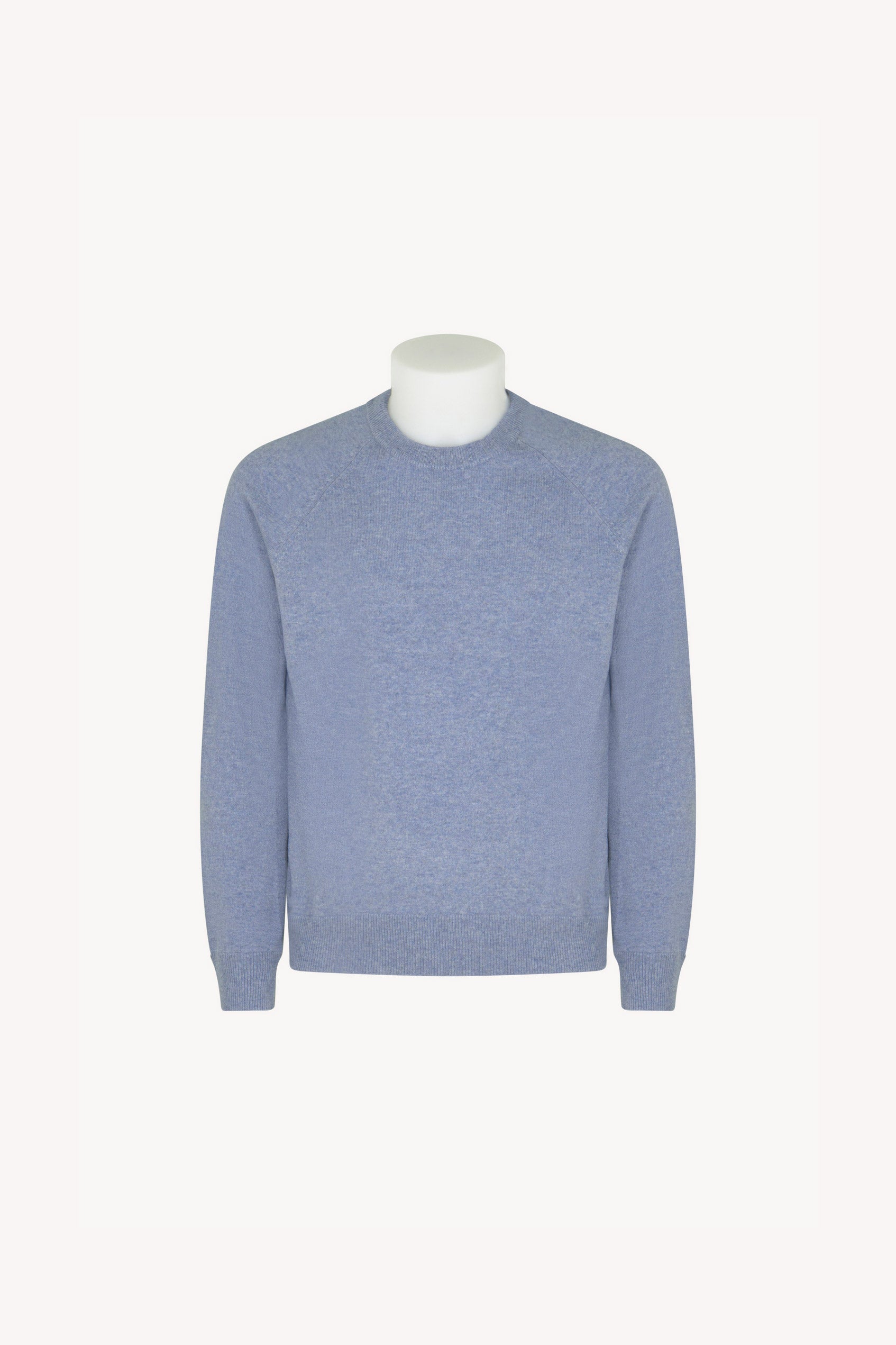 Crew-neck sweatshirt in stockinette stitch with double ribbed collar and profiles. The fit is regular, raglan sleeves. The garment is made with 100% Cashmere 2/27 1 thread yarn.