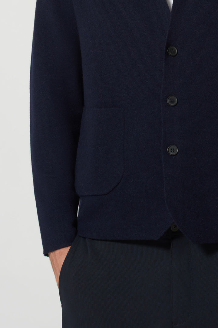 Blazer in Maglia Stoffa in Puro Cashmere Navy